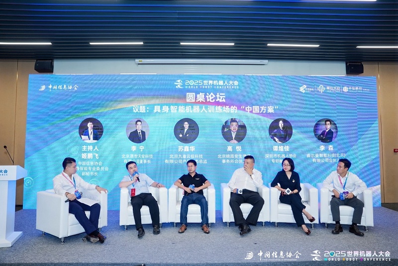 第四階段是圓桌對話環(huán)節(jié),由中國信息協(xié)會具身智能專業(yè)委員會副秘書長姬鵬飛主持,邀請晟世天安董事長李寧,九章云極生態(tài)總監(jiān)蘇鑫華,錦路安生律所合伙人高悅,深圳市機(jī)器人協(xié)會秘書長譚維佳,睿爾曼合伙人李森,圍繞具身智能訓(xùn)練場關(guān)鍵問題展開深入探討。