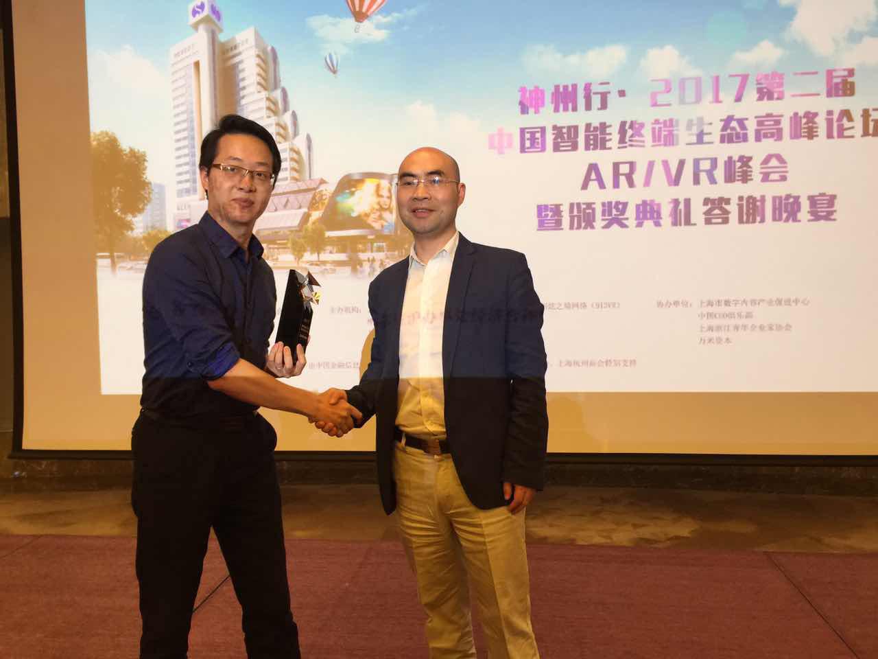 獲得“最具影響力媒體獎(jiǎng)”的是福州炫之境網(wǎng)絡(luò)(913VR),由神州行智能終端生態(tài)體驗(yàn)港 陳燦華董事長(zhǎng)擔(dān)任頒獎(jiǎng)嘉賓。