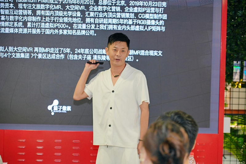 量子像素創(chuàng)始人魏慧民介紹了其打造的混合現(xiàn)實(shí)文旅解決方案。作為國(guó)內(nèi)MR內(nèi)容與空間定位技術(shù)的頭部團(tuán)隊(duì),量子像素已與多個(gè)5A/4A景區(qū)展開(kāi)合作,推出定制化MR體驗(yàn)內(nèi)容,旗下產(chǎn)品《秦淮奪魁錄》、《哇嗚!大秦帝國(guó)》等能實(shí)現(xiàn)無(wú)需室內(nèi)空間,而是實(shí)景虛實(shí)融合的豐富體驗(yàn)。