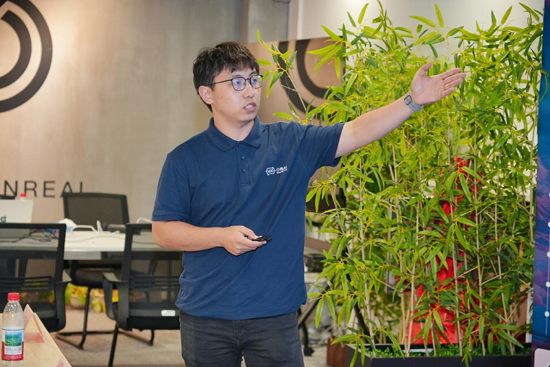 蓮藕科技項(xiàng)目負(fù)責(zé)人李旭介紹了蓮藕科技及其與嶗山合作的沉浸式文旅解決方案。作為一家專(zhuān)注于元宇宙與空間科技的高新技術(shù)企業(yè),蓮藕科技已累計(jì)獲得143項(xiàng)知識(shí)產(chǎn)權(quán),自研核心技術(shù)覆蓋OS系統(tǒng)、渲染引擎、AI交互等模塊,具備打造跨芯片平臺(tái)VR產(chǎn)品的能力。