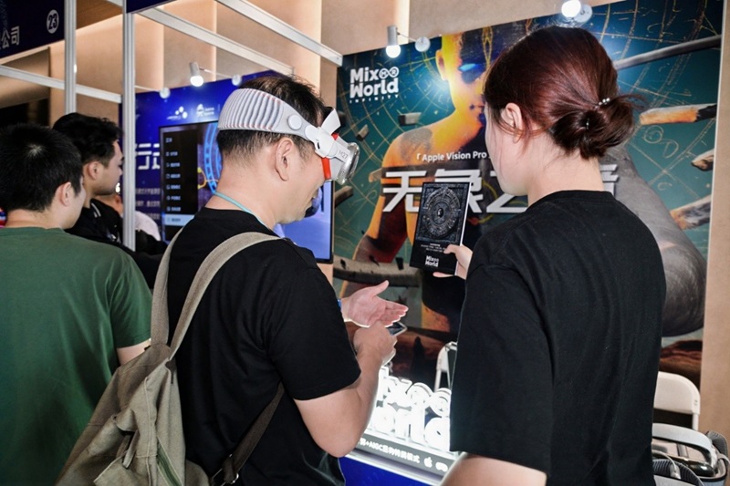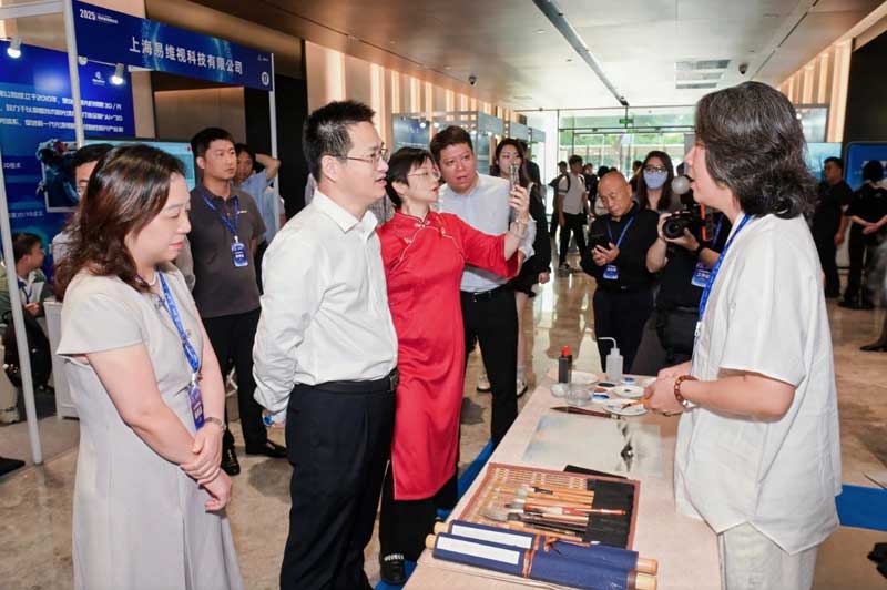 步入漕河涇會議中心科創(chuàng)廳,上海本地元宇宙展商的特色展示已提前營造出濃厚的數(shù)智氛圍。