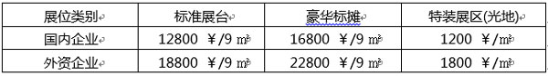 1、標(biāo)準(zhǔn)展位9m²(3m×3m);配置:三面展板(高2.5m)、一塊中英文楣板 、一 張洽談桌、二把椅子、地毯、 220V電源插座一個(gè)、二支射燈。