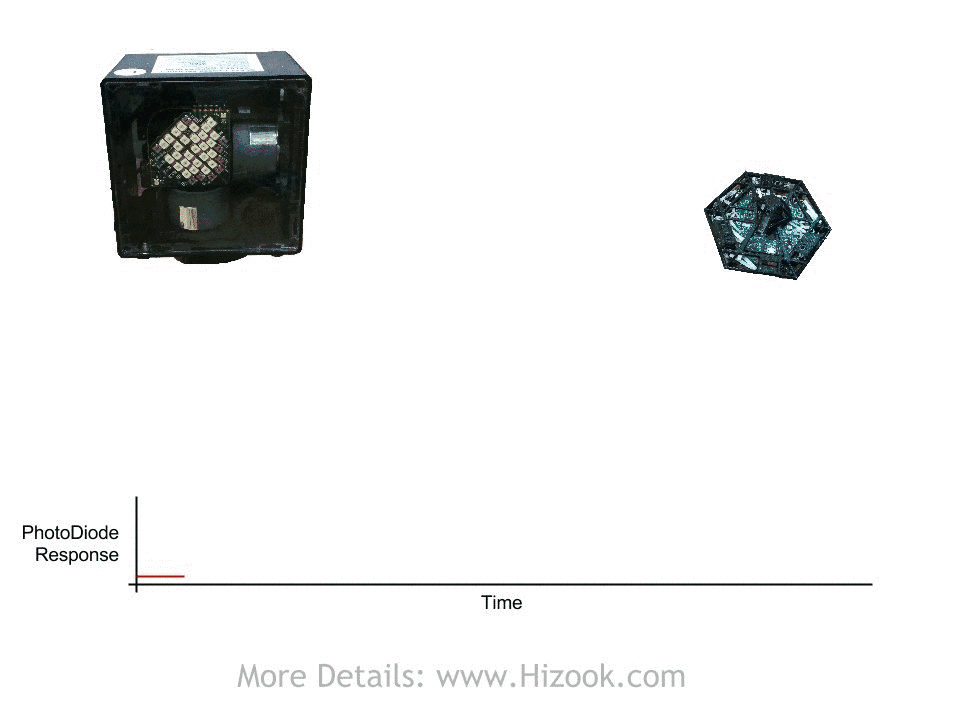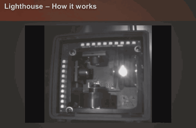 首先基站會和傳感器進(jìn)行一次溝通,同步閃光(sync light),這樣傳感器會告訴傳感器的控制芯片,讓它把計時器(類似于秒表的功能)歸零,接下來的10毫米內(nèi),會有一個激光面掃過,這個激光面接觸到傳感器的時候,傳感器就會發(fā)出信號,計時器就停了,記錄下時間,然后歸零。緊接著另一個激光面掃過,再次記錄時間,歸零。