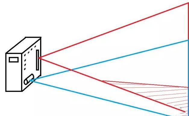 如下圖,其中紅色面為豎直的激光面,掃動方向是水平的,藍(lán)色為水平激光面,掃動方向為上下垂直掃動,紅色陰影部分位于藍(lán)色面下方。