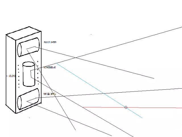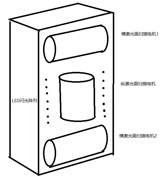 畫工丑了點,將就點吧……是的,你沒看錯,大朋的基站里是三組電機,比Vive多一組。分別為兩個打出橫激光面的電機和一個打出豎激光面的電機。