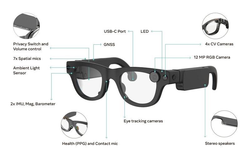 隨后,Meta在今年二月份正式發(fā)布了Aria Gen 2。據(jù)該公司介紹,相較于第一代產(chǎn)品,Aria Gen 2在傳感能力、佩戴舒適度、交互體驗(yàn)以及設(shè)備端計(jì)算性能等方面均實(shí)現(xiàn)了顯著提升。值得關(guān)注的是,這兩代產(chǎn)品均未配備任何形式的顯示屏,這與Meta近期推出的Meta Ray-Ban Display智能眼鏡形成明顯區(qū)別。?