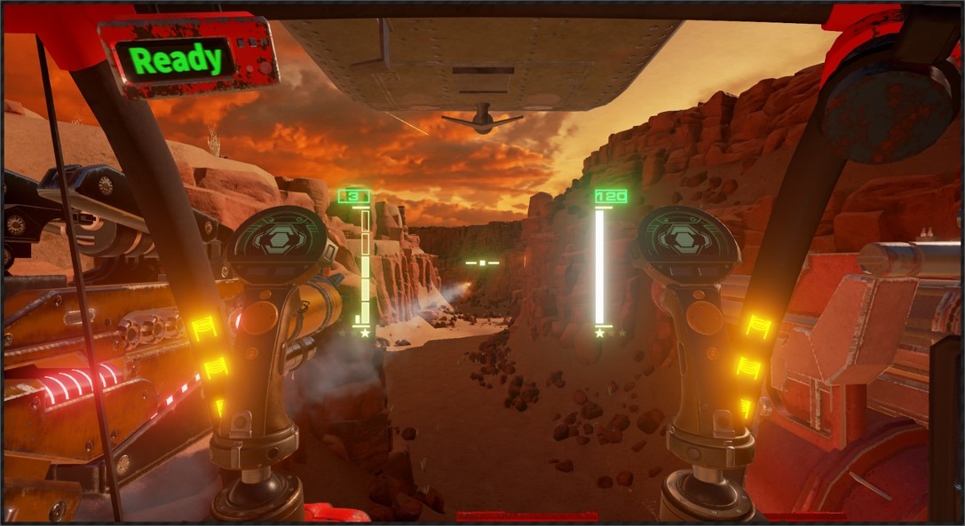 這款由SmellyRiver團隊打造的多人聯(lián)機游戲圓滿了很多人年少時期的機甲夢,故事架構(gòu)在能源耗盡的未來世界,為取得神秘能量code51,各方勢力紛紛研制出重型機甲參與爭奪。而玩家正是以機甲駕駛員的角色身份置身于座艙中展開搏殺,游戲采用了VR中少見的坐姿操作形式,一來增強了駕駛機甲的實感,同時也能在機甲高速移動時更好地防止眩暈。