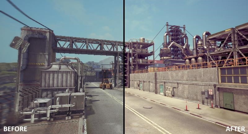 線下首發(fā)版本,制作方拿出了十足的誠意,原本的倉庫地圖升級成了化學(xué)工廠場景,為游戲增添了濃濃的舊工業(yè)氣氛,與末日廢土的主題更加貼切,除了場景,機甲和武器也都在升級之列,9款機甲各成一派,都有不同的玩法、外觀,配置、防御屬性和速度,與各類武器相互配合可以組合出不同效果,在玩法和戰(zhàn)術(shù)上提供了多種變化的可能,讓走進體驗店的玩家可以自行開發(fā)并從中找到最適合自己的那一款。與此同時,線下首發(fā)版本對游戲畫面進行了深度打磨,整體畫質(zhì)得到了極大的提升。