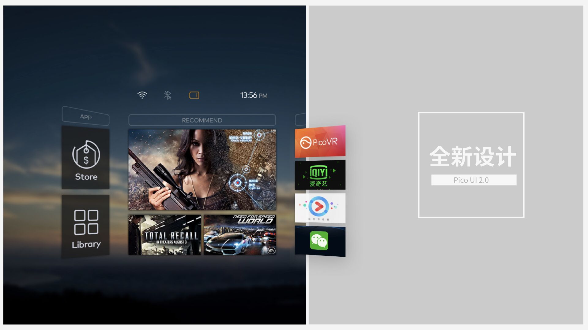 在內(nèi)容上,Pico Goblin VR一體機可享有Pico三大內(nèi)容平臺——PicoVR、Pico UI2.0、PicoHome的所有影視內(nèi)容,以及獨家合作的游戲資源。Pico UI2.0系統(tǒng)中更內(nèi)置了“愛奇藝VR”、“優(yōu)酷VR”、“百度VR瀏覽器”等多款I(lǐng)MAX影院巨幕APP,“小花秀VR”等VR直播APP,囊括了超50萬小時的海量影視資源。