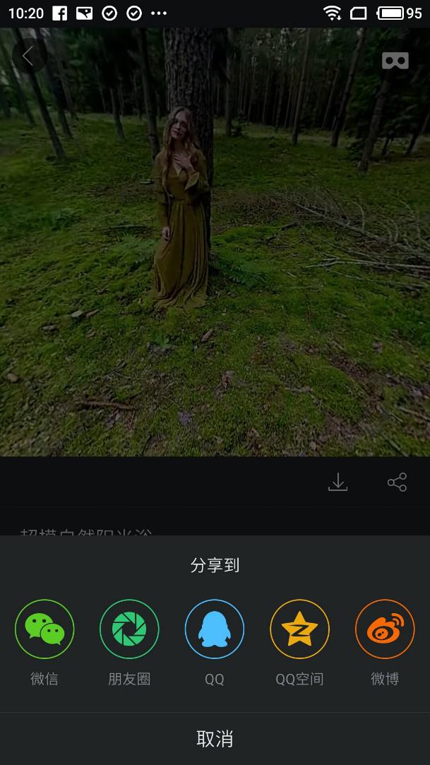 百度VR瀏覽器最新版本新增VR視頻分享功能,可將各類VR視頻分享至微信、朋友圈、QQ、QQ空間、微博等社交平臺。獨樂樂不如眾樂樂,好視頻分享給好朋友。
