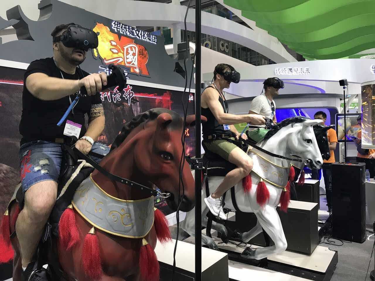 一號館作為重點項目展示區(qū),展現(xiàn)出了前所未有的活力與魅力,其中奇境森林科技研發(fā)、深圳華僑城文化集團出品的《二十四史-VR三國》成為了引人注目的焦點產(chǎn)品, 游戲以三國為背景,講述了劉備、張飛、關(guān)羽兄弟三人與猛將呂布的殊死戰(zhàn)斗,描繪了一場酣暢淋漓的沙場血拼,在現(xiàn)場,《VR三國》受到眾多玩家與參觀者的廣泛好評,就連中國宣傳部副部長孫志軍也親自來到位于龍崗區(qū)的甘坑小鎮(zhèn)去體驗馬戰(zhàn),并且提出了寶貴的建議。