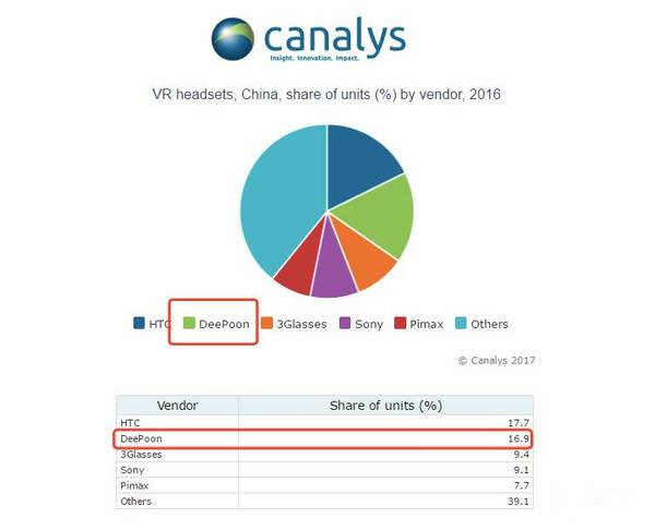 一年多時間內(nèi),通過數(shù)次迭代升級,以及不斷的內(nèi)容更新完善,在消費者心中創(chuàng)下了不俗的產(chǎn)品口碑。在Canalys 2017年1月發(fā)布的《中國VR市場報告》指出,大朋VR憑借一體機M2和PC VR E2,成為2016年中國VR市場國內(nèi)本土VR公司銷售第一名。