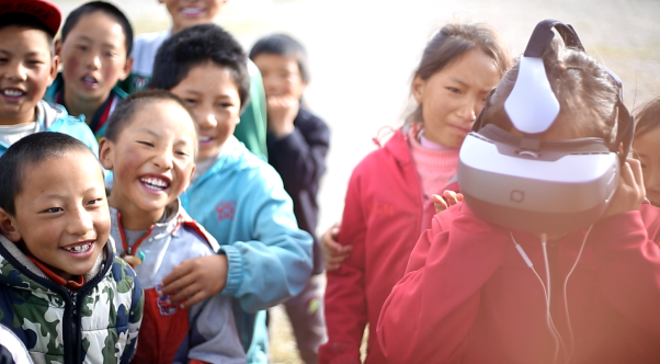 山區(qū)孩子通過大朋VR一體機看外面的世界。