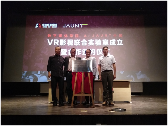 2017年5月25日,Jaunt中國與北京電影學(xué)院數(shù)字媒體學(xué)院宣布共同成立VR影視聯(lián)合實(shí)驗(yàn)室,這是國內(nèi)首個(gè)針對VR內(nèi)容創(chuàng)作的孵化器。作為雙方在產(chǎn)學(xué)研合作的一部分,Jaunt中國將為數(shù)字媒體學(xué)院提供其享譽(yù)業(yè)界的專業(yè)電影級VR攝錄機(jī)——Jaunt ONE作為教學(xué)資源,并提供配套的基于云端的縫合、渲染、發(fā)布等一系列工作流工具。與此同時(shí),北京電影學(xué)院數(shù)字媒體學(xué)院及其師生將會(huì)在未來研究、課程開發(fā)、項(xiàng)目制作和行業(yè)實(shí)習(xí)上與Jaunt中國進(jìn)行多方位的合作。