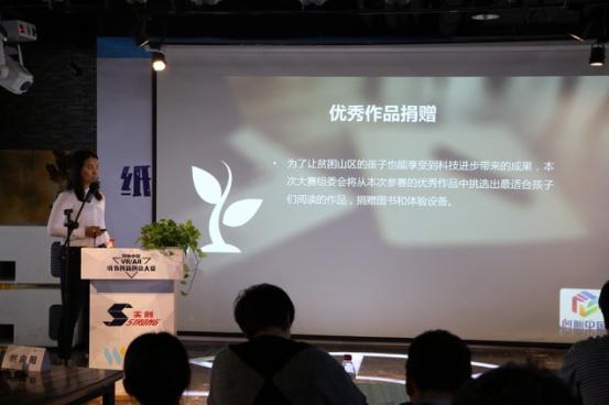 接著,主辦方實創(chuàng)公司劉秋紅主任(她同時也是StrongVR的創(chuàng)始人之一)上臺對本次大賽及體驗季系列活動進行了詳細的介紹,比如大賽目標、大賽作品內容范圍分類、參賽團隊、大賽看點、大賽流程、體驗季以及優(yōu)秀作品捐贈等。