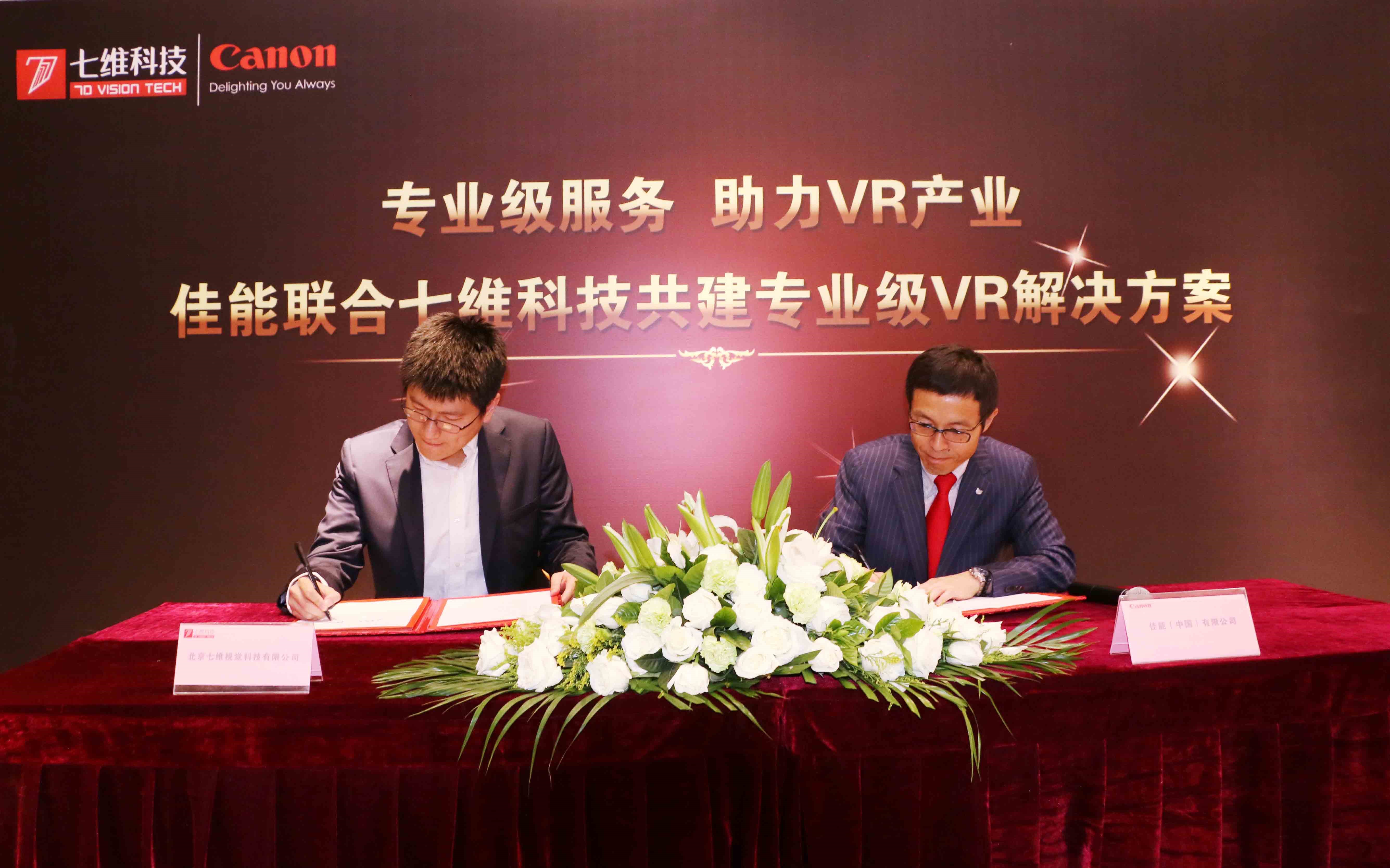 佳能(中國)影像信息產(chǎn)品B to B銷售部高級總經(jīng)理鈴木俊行與七維科技CEO殷元江簽署戰(zhàn)略合作協(xié)議