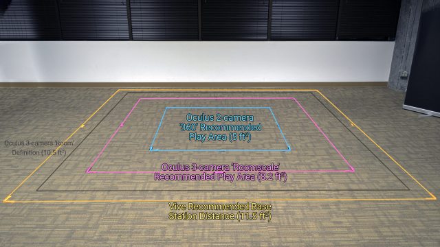事實(shí)上,Vive只需要兩個(gè)外部的傳感器和電源就可以實(shí)現(xiàn)11.5×11.5平方英尺的追蹤面積。Rift的追蹤面積只有5×5平方英尺,而且傳感器需要和電腦相連,這意味著更多的線纜。Rift攝像頭作為額外的傳感器需要60美元,可以將追蹤面積提升到8.2×8.2平方英尺。Oculus表示當(dāng)系統(tǒng)有超過三個(gè)以上的傳感器時(shí)將造成不穩(wěn)定,因此Rift攝像頭并不值得。