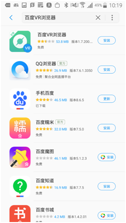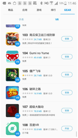 用戶可在三星應(yīng)用商店搜索“百度VR”or“百度VR瀏覽器”均可下載