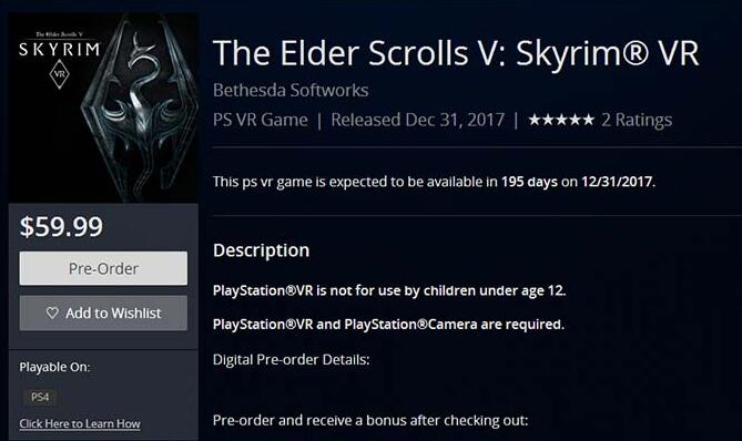 對于VR游戲的玩家們來說,剛剛結(jié)束的2017 E3大展果然沒有讓大家失望:比如即將登陸索尼PSVR的《上古卷軸5:天際VR》相信一定能夠讓無數(shù)玩家們尖叫不已。雖然這款游戲具體要等到今年晚些時候才會正式推出,不過現(xiàn)在大家已經(jīng)可以前往索尼PlayStation商店進(jìn)行預(yù)購。