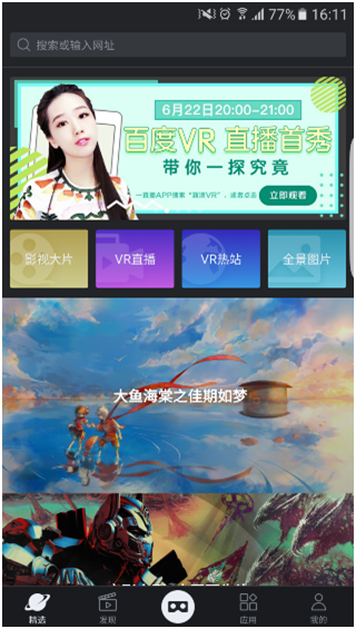 搜索的類別從視頻、應(yīng)用、網(wǎng)站、直播、圖片,可以說(shuō)是全網(wǎng)資源一條龍服務(wù)了。從搜索類別我們可以注意到與時(shí)下網(wǎng)民的上網(wǎng)行為習(xí)慣相符合,分類清晰且粘度高,融合連貫性強(qiáng),熱搜關(guān)鍵詞引導(dǎo)用戶體驗(yàn)。例如美女,通常我們都是上網(wǎng)搜關(guān)鍵字“美女”開始,那么你就能在網(wǎng)站類別全網(wǎng)搜索“美女”,百度VR安卓1.8版本能讓你在2D環(huán)境內(nèi)“百度一下”。
