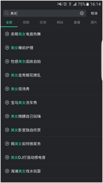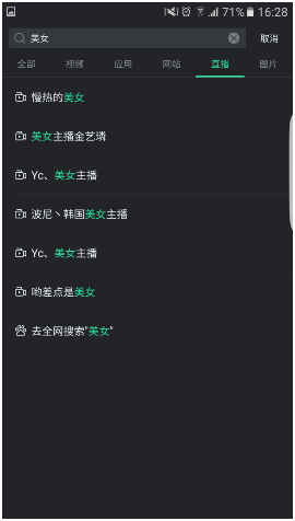 在2D環(huán)境下主動(dòng)式搜索“美女”,列表就會(huì)顯示出當(dāng)前所有類別有關(guān)美女的內(nèi)容。