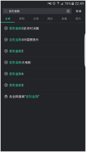 熱門影視大作怎能錯(cuò)過(guò)?!搜索變形金剛可以看到就要上映的大片變形金剛5史詩(shī)對(duì)決赫然上榜。據(jù)說(shuō)這是最后一部變形金剛系列電影了,向汽車人致敬!