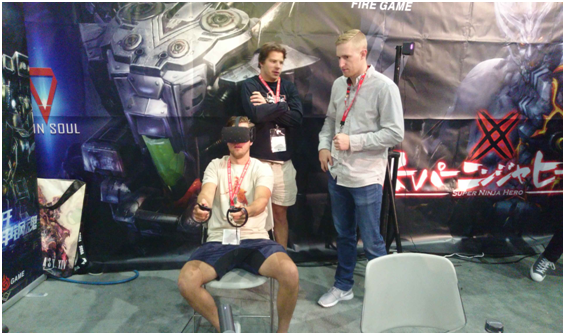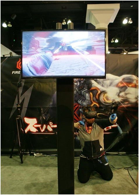 本次E3火游攜兩款主力產(chǎn)品參展:《超忍英雄VR》和《IRON SOUL》,前者是適配各家頭顯的VR平臺游戲,后者是主攻線下的VR模擬游戲。