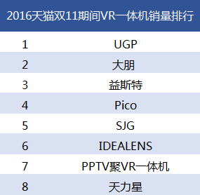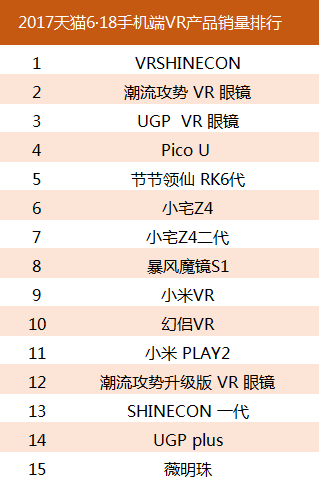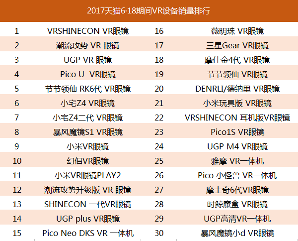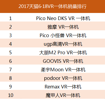 先來(lái)看下天貓平臺(tái)618當(dāng)天VR單品銷量排行榜。