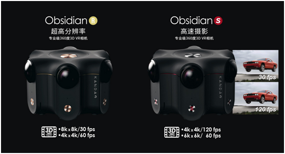 Kandao Obsidian有兩個型號,ObsidianR和ObsidianS,黑曜石 R具有8K分辨率,能夠創(chuàng)建8Kx8K / 30fps或4Kx4K / 60fps的3D-360視頻。黑曜石S設(shè)計用于以高幀率拍攝,能夠以4K分辨率拍攝高達120 fps的素材。