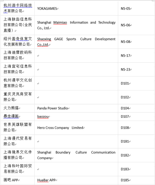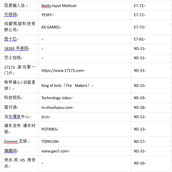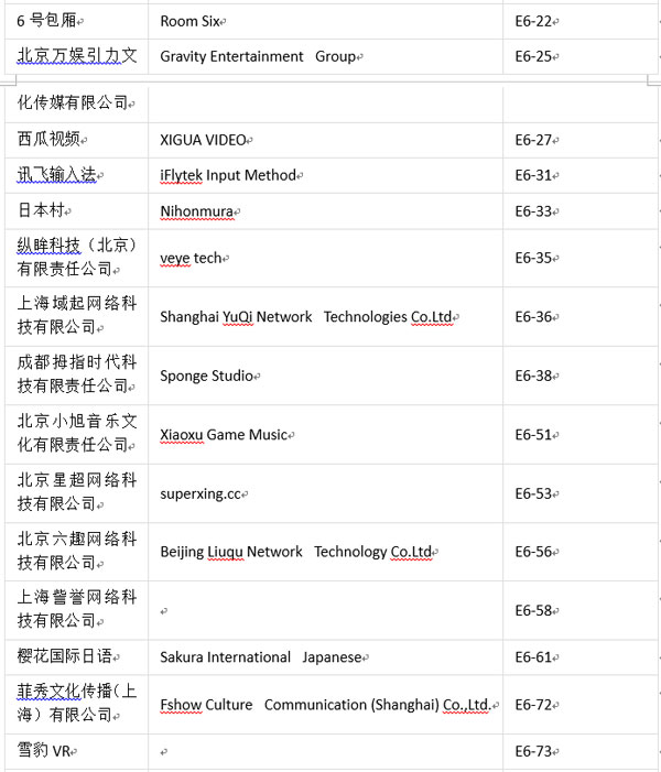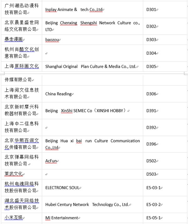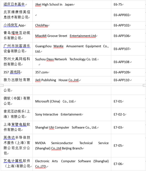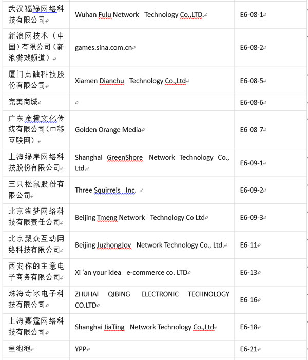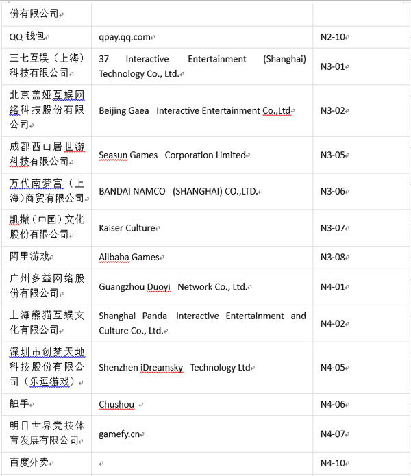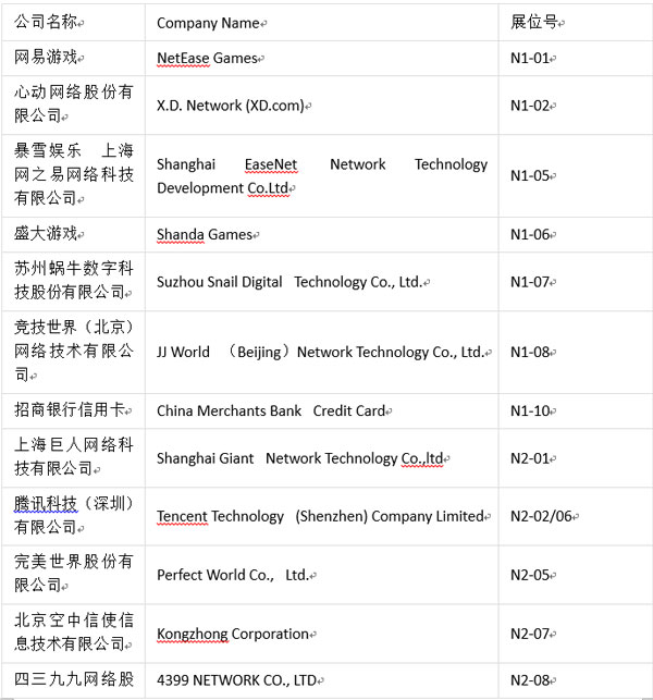 值此盛事,為方便各位業(yè)內(nèi)人士、參展商及合作伙伴進(jìn)一步了解本屆ChinaJoyBTOC展商分布情況,ChinaJoy主辦方特此公布展商詳細(xì)名單(截至2017年7月18日):
