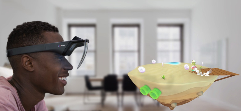 Mira的Prism頭顯最大的優(yōu)點(diǎn)是它不會(huì)封閉你的視野。這是增強(qiáng)現(xiàn)實(shí),而不是虛擬現(xiàn)實(shí),這意味著AR應(yīng)用可以把內(nèi)容定位在你視野中的真實(shí)物體之上。