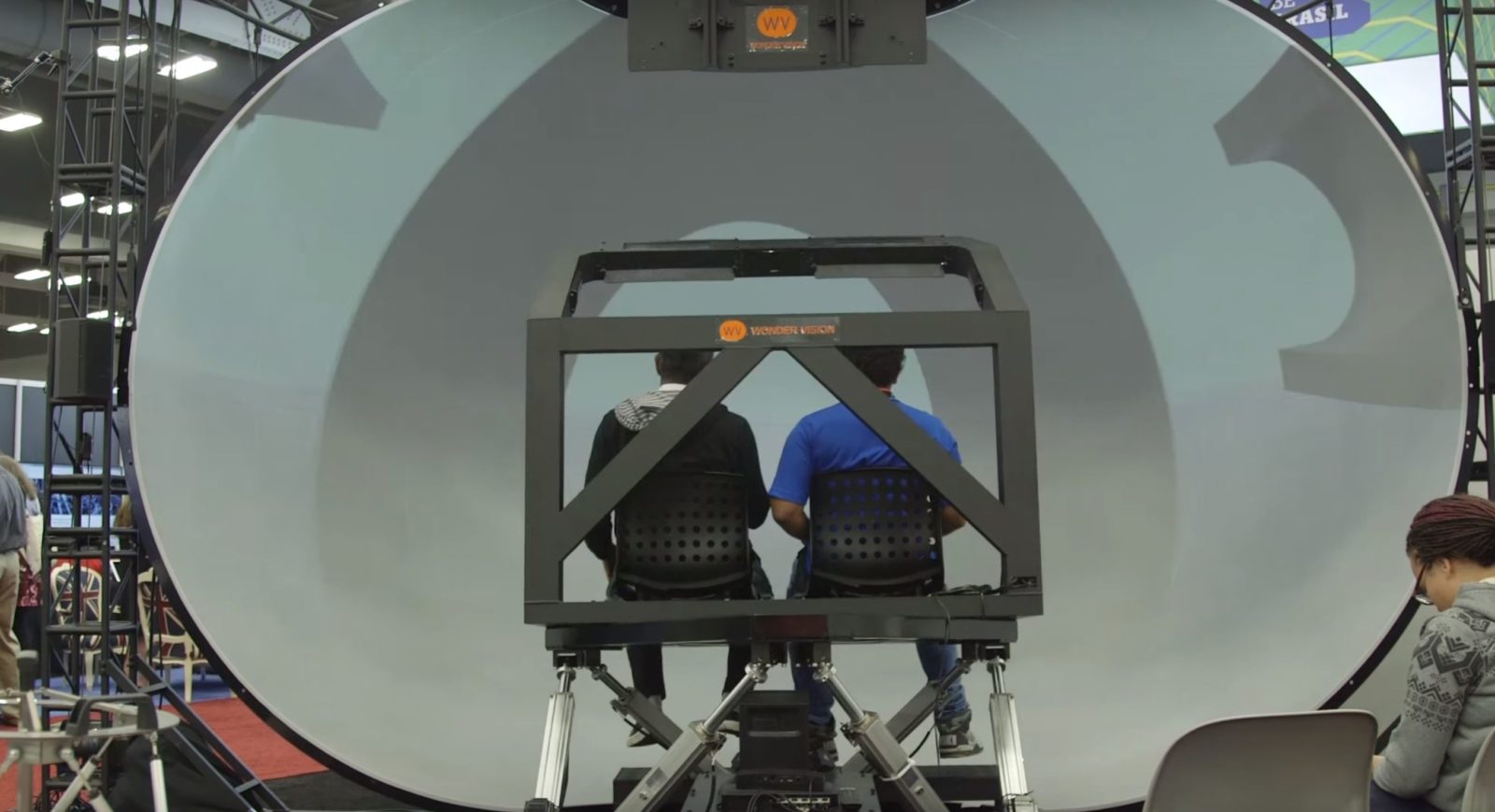 正如其名字一樣,該VR體驗(yàn)的分辨率達(dá)到了8K。用戶所看到的是一個(gè)碩大的半球形8K屏幕。和傳統(tǒng)的VR頭顯一樣,它可以完全覆蓋用戶的視野,提供十足的沉浸感。該球形體驗(yàn)設(shè)備寬度達(dá)到了5.2米,高度達(dá)到了3.4米,深度為2.6米。