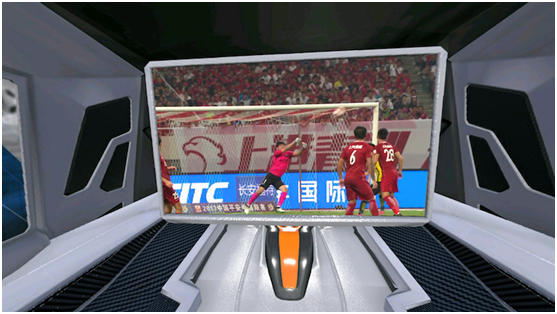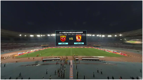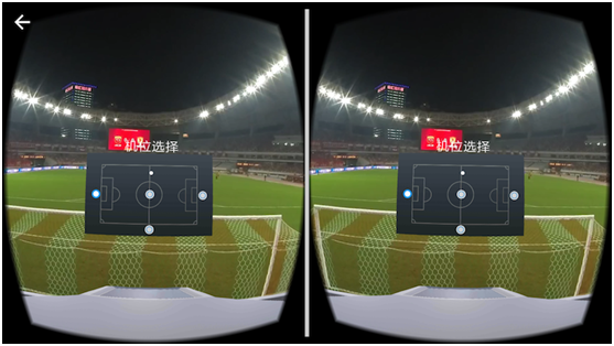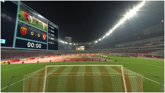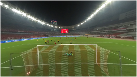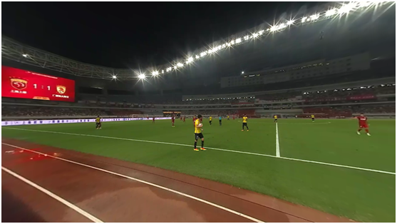 如果觀眾不進(jìn)行機(jī)位選擇,那么默認(rèn)觀看的內(nèi)容就是公共信號,在這種情況下,機(jī)位會(huì)隨著導(dǎo)播的操作而進(jìn)行切換。我在之前關(guān)于中超VR直播的報(bào)道中曾經(jīng)提過,每場比賽的直播機(jī)位大約在15個(gè)左右,這其中既包括我前面提到的球門、飛貓等觀眾可以選擇觀看的機(jī)位,也包括場邊或教練席等更多位置。通過多機(jī)位的切換,直播團(tuán)隊(duì)能夠讓觀眾既體驗(yàn)到180度3D所帶來的沉浸感,又帶給觀眾一種類似傳統(tǒng)觀賽的美好體驗(yàn)。