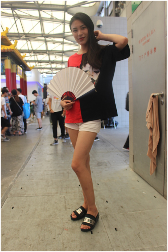 美女的身材不錯,感覺像是模特,空白扇子好評。