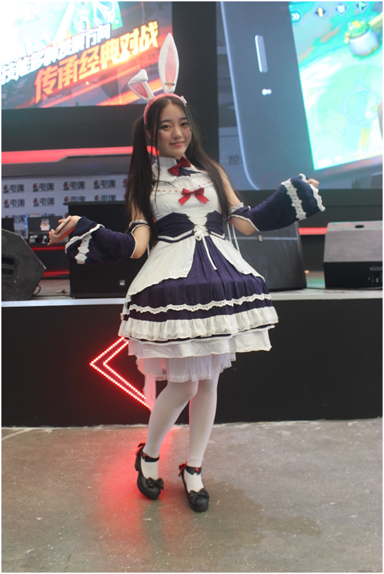 蘿莉塔裙裝加雙馬尾加兔耳,滿滿的萌點。