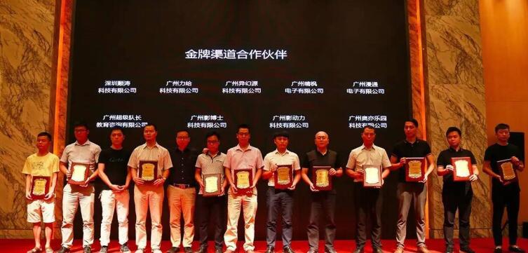 推介會現(xiàn)場,由大朋VR創(chuàng)始人陳朝陽、大朋VR銷售副總裁董志華向廣州杰同電子設(shè)備有限公司、廣州卓遠(yuǎn)機(jī)械設(shè)備有限公司、廣州龍程電子有限公司、北京樂客靈境科技有限公司四家企業(yè)頒發(fā)了年度白金級渠道合作伙伴獎杯,向廣州玖的數(shù)碼科技有限公司,廣州富華科技有限公司,深圳順濤科技有限公司,廣州超級隊(duì)長教育咨詢有限公司,廣州影動力科技有限公司等17家企業(yè)頒發(fā)金牌合作伙伴獎牌。陳朝陽表示,未來大朋VR將繼續(xù)攜手各家合作伙伴,以用戶為中心,打造更優(yōu)質(zhì)的VR硬件產(chǎn)品,打造中國VR第一品牌。