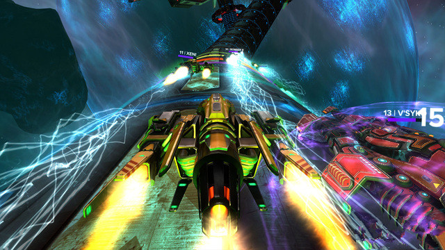 游戲的玩法十分簡(jiǎn)單,玩家高速奔馳在科技感十足的賽道上,把握時(shí)機(jī)沖上加速板或者躲避障礙墻,盡量不要與其他賽車(chē)相撞,超過(guò)所有人贏得比賽即可。當(dāng)然,游戲不僅僅是簡(jiǎn)單的競(jìng)速跑圈,玩家還可以在比賽中使用礦山,汽車(chē)大炮和歸巢導(dǎo)彈等武器干擾對(duì)手。此外,游戲提供豐富的競(jìng)速模式,既有難度不斷升級(jí)的“職業(yè)生涯”模式,也有支持多達(dá)16人競(jìng)賽的在線多人模式。