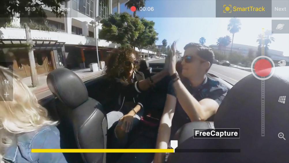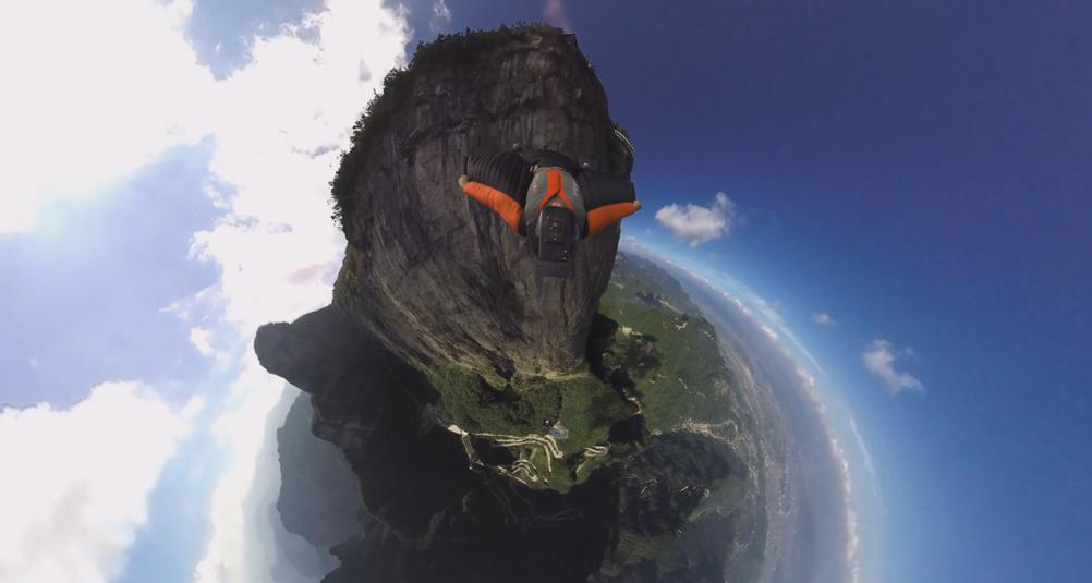 ③先拍攝后取景,手機(jī)自由剪輯,隨時隨地將全景視頻轉(zhuǎn)化為平面視頻。Insta360 ONE率先推出通過手機(jī)App自由剪輯全景視頻(FreeCapture)功能。該功能解決了運(yùn)動相機(jī)拍攝過程中取景痛點,可先拍攝后取景,手機(jī)端自由剪輯。比如在翼裝飛行中,只需要將ONE固定在運(yùn)動員頭盔上,便可實現(xiàn)航拍和運(yùn)動相機(jī)拍攝畫面。然而不同的是,同樣一次飛行機(jī)會,拍攝回來的畫面是實時拼接的360°全景運(yùn)動畫面,同時通過FreeCapture還可以剪輯多種視角多種創(chuàng)意的平面影像,一鍵分享至社交平臺。該功能突破復(fù)雜的后期剪輯工藝流程,為用戶提供了“一次拍攝,多次構(gòu)圖”的創(chuàng)意空間,幫助用戶隨心所欲截取全景畫面的部分素材,常剪常新,完成多樣化創(chuàng)作。如此簡單操作,使新手秒變?nèi)斑_(dá)人。