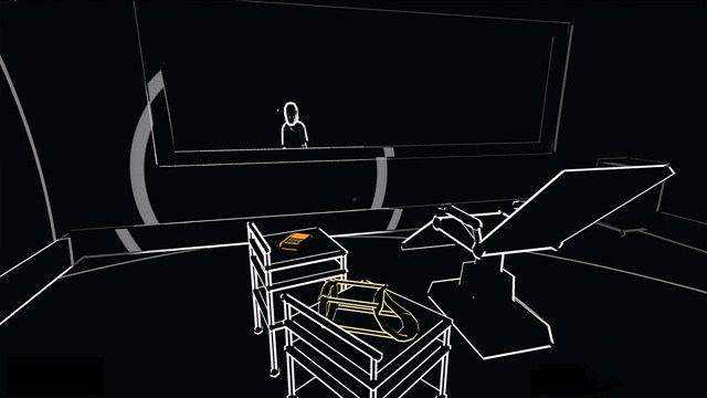 當(dāng)demo進(jìn)行到一家廢棄的神秘設(shè)施中時,筆者用來探路發(fā)出的聲音驚醒了某種神秘的怪物,它發(fā)出的恐怖吼叫瞬間讓整個游戲的世界變得清晰起來,但同時又十分嚇人。此時玩家只能發(fā)出微弱的聲音去探知周圍的路線,否則就會引來怪物的追擊。