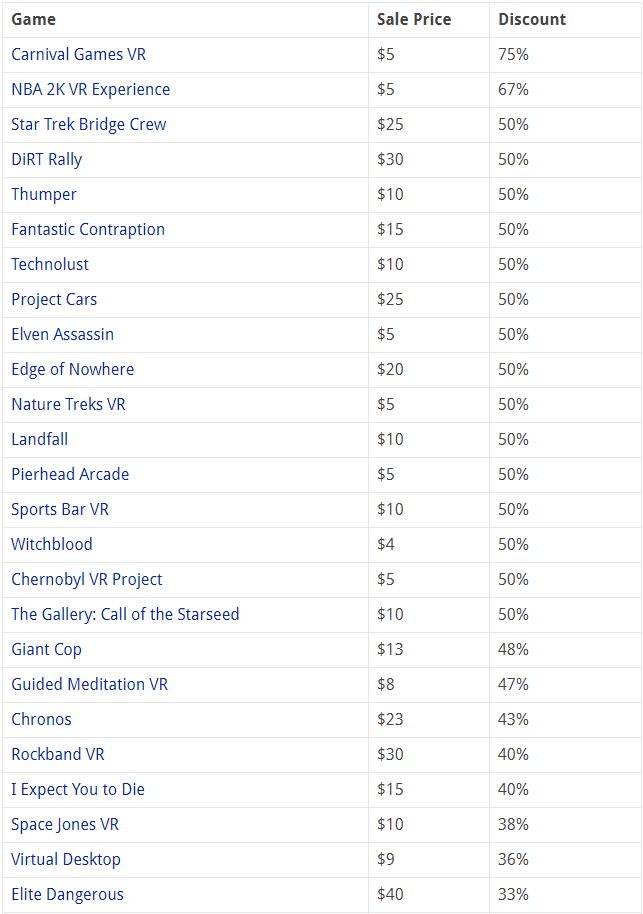 此外,還有大量的其他游戲也在本周末進(jìn)行不同程度的促銷(xiāo),具體游戲清單以及優(yōu)惠程度如下表(其中并不包括以上提到的捆綁套裝內(nèi)的游戲):