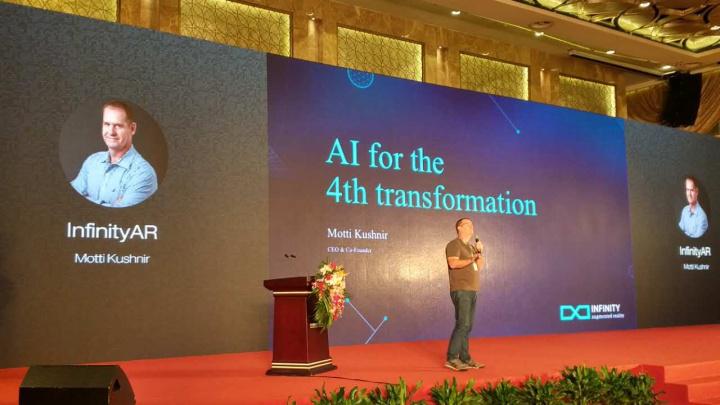 InfinityAR CEO Motti Kushnir,以《第四次AI革命》為題。主要講述了 VR/AR/MR 產(chǎn)業(yè)在光學(xué)方面以及在人工智能方面的挑戰(zhàn)。Motti Kushnir 介紹了 infinity 對于用戶使用體驗到方面的獨到見解。期待與在場嘉賓從芯片到系統(tǒng)再到用戶體驗等多領(lǐng)域的合作以及共同開發(fā)。