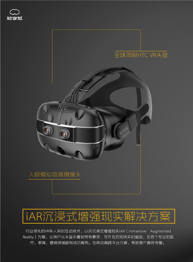 除了做項目,黃莊告訴我,目前團隊還研發(fā)了一個‘很特別的東西’。“我們都知道,目前AR產品最大的問題就是視場角太小,很多圖形無法以一個全尺寸的大小顯示出來,因此我們基于HTC VIVE研發(fā)了一項我們稱之為‘iAR(immersive AR,沉浸式增強現(xiàn)實)’的技術。當用戶戴上VIVE頭顯,我們透過外部攝像頭(定制高清攝像頭,并非VIVE自帶攝像頭)把外面的畫面全部抓取進來,然后再在上面做AR內容的疊加,用戶戴著頭顯,不管頭部怎么轉,看到的都是一個全幅的沉浸式AR內容。我們認為iAR會有很多的B端應用場景,比如說我們過去經常遇到自己戴著頭顯、外面還有一個場外指導的情況,這樣就會讓我們感覺非常出戲,現(xiàn)在我們可以把外部的人也包含進來,這樣就可以產生更多的互動,由此我們就可以產生更多的可能性。”
