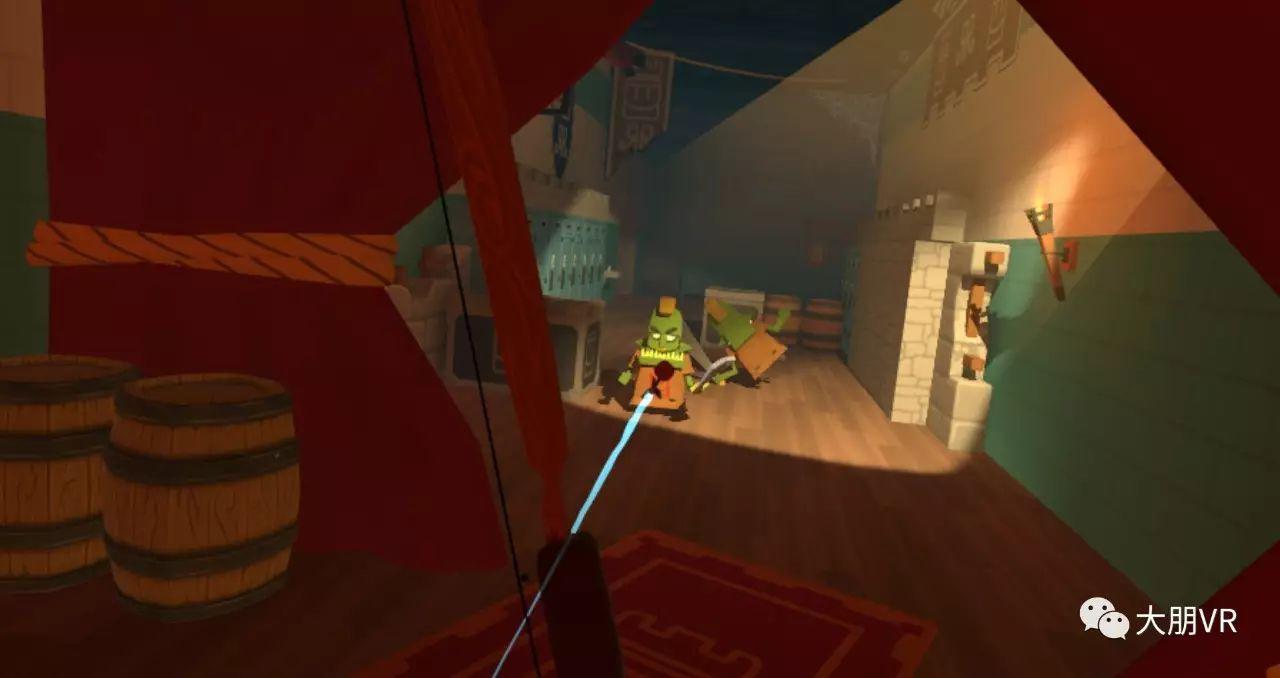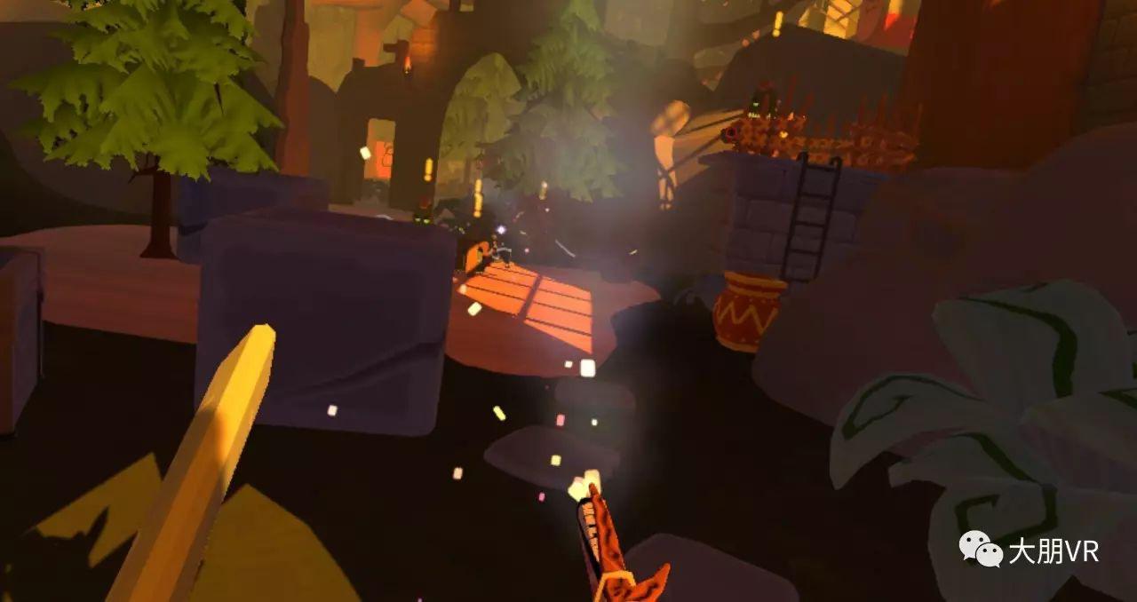 是一款奇幻冒險(xiǎn)的PVE游戲,玩家可以從弓,煙花棒,長(zhǎng)劍和盾牌中挑選自己順手的武器,每個(gè)武器對(duì)應(yīng)一只手,所以雙手可以裝備不同的武器。弓箭的射程最遠(yuǎn),缺點(diǎn)是必須要另外一只手拉弦,所以選擇了弓意味著另一只手不能拿別的武器。煙花棒是中距離大威力武器,有點(diǎn)類似于霰彈槍,缺點(diǎn)是裝填太慢。長(zhǎng)劍用來(lái)近距離廝殺,而盾牌可以用來(lái)抵擋一些飛行道具,這些都與它們?cè)谄渌螒蛑械墓δ芟嗨?,就不一一介紹了。另外,游戲場(chǎng)景中會(huì)有紅色的藥水瓶出現(xiàn),喝下就可以在一定時(shí)間內(nèi)獲得雙倍傷害的效果。