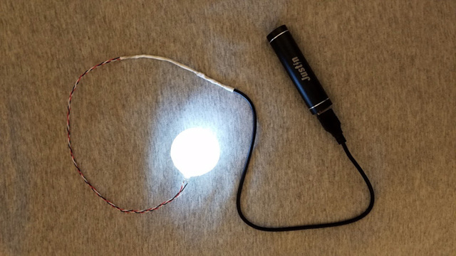 打印出來后通過LED燈照亮,并通過舊的USB線讓供電裝置提供5V的電源供電。經(jīng)過測試后,他把這個(gè)PLA球打磨了一下,讓LED光散射更柔和,看起來不會(huì)太刺眼。