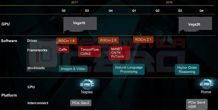 PPT中顯示,下一代的Vega 20將采用PCIe Gen4接口,并且將于明年第三季度開(kāi)始出貨。外界推測(cè),Vega 20很有可能是Vega 10的改進(jìn)版,采用12nm LP制程。新款顯卡重點(diǎn)是在效能上做出進(jìn)一步優(yōu)化,在VR性能方面更進(jìn)一步提升。