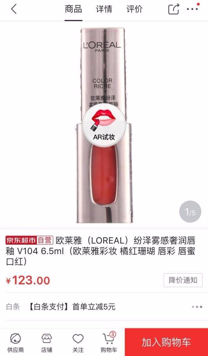 以京東AR試妝為首的AR購物體驗工具,通過真實世界與虛擬世界信息的“無縫”銜接與合成,為用戶帶來真實場景體驗與便捷的購物方式,更為品牌與消費者之間帶來了新的交互方式。京東通過強大的技術(shù)后臺,直接將功能搭載于商品主圖,用戶只需點擊試裝按鈕即可看見上裝效果,應(yīng)用非常便捷,極大地提升了用戶的購物體驗。