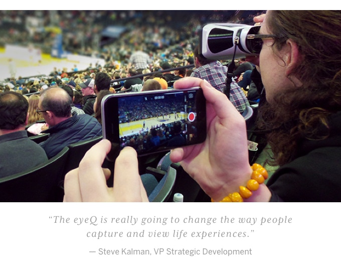 利用類似于三星Gear VR或谷歌Daydream等頭顯上的智能手機(jī)遮擋板,EyeQ可以讓用戶以記錄事件的形式觀看現(xiàn)場(chǎng)畫面,并且畫面縮放倍數(shù)高達(dá)16倍。該設(shè)備頂部設(shè)有控制觸摸板,作為一種簡(jiǎn)單明了的控制方式。