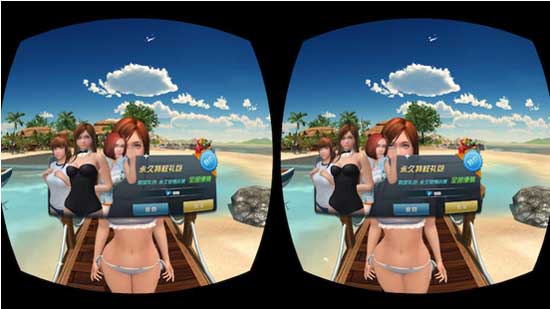 《我的VR女友》是一款戀愛養(yǎng)成游戲,其故事背景是:一位知名的女模特(也就是女主)來到一座美麗的海島上接受拍攝,作為主角的玩家是同行的攝影師,不僅要為女主拍攝作品,還要陪吃陪喝陪玩,于是就這樣上演了一段美麗的愛情故事。我首先需要說明一下我為什么如此喜歡這款作品:首先,與眾多還處在demo水平的VR游戲不同,本作的完成度非常高,讓我有一種玩到大作的感覺;其次,本作的很多細節(jié)非常到位,人物的造型、場景的設計、小游戲的內(nèi)容都讓我非常滿意;最后,本作在內(nèi)付費方面進行了成功的嘗試,在手游行業(yè)內(nèi)付費已經(jīng)是非常普遍的現(xiàn)象,而本作是我見到的最早在移動VR游戲上進行嘗試的產(chǎn)品,這對于之后其他產(chǎn)品的發(fā)展提供了一個非常好的參考樣本。下面我想具體說說我認為本作比較出色的幾個方面。