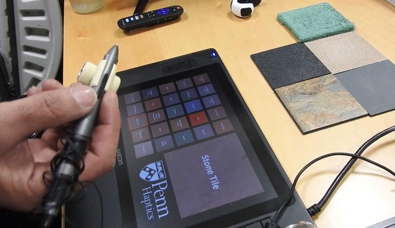 Domenikos使用標(biāo)準(zhǔn)的筆輸入設(shè)備,讓我感受到我觸摸的對(duì)象的紋理。當(dāng)他激活與石瓦相關(guān)聯(lián)的軟件時(shí),我將筆移到顯示石塊的屏幕上。它感覺粗糙和顛簸,就像真正的石頭。鋼筆震動(dòng),讓我感受到真實(shí)的觸摸感覺。