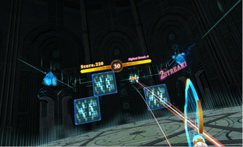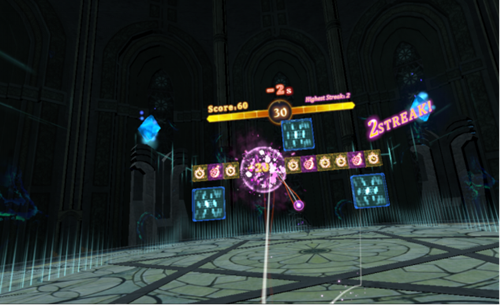 Stage是限時闖關(guān)模式,還是有一定難度的。每關(guān)只有30秒,要在有限的時間里把空間里所有的藍色方塊都打掉。Combo數(shù)越高,擊打藍色方塊得分越高,所以連擊才是獲得高分的關(guān)鍵哦~